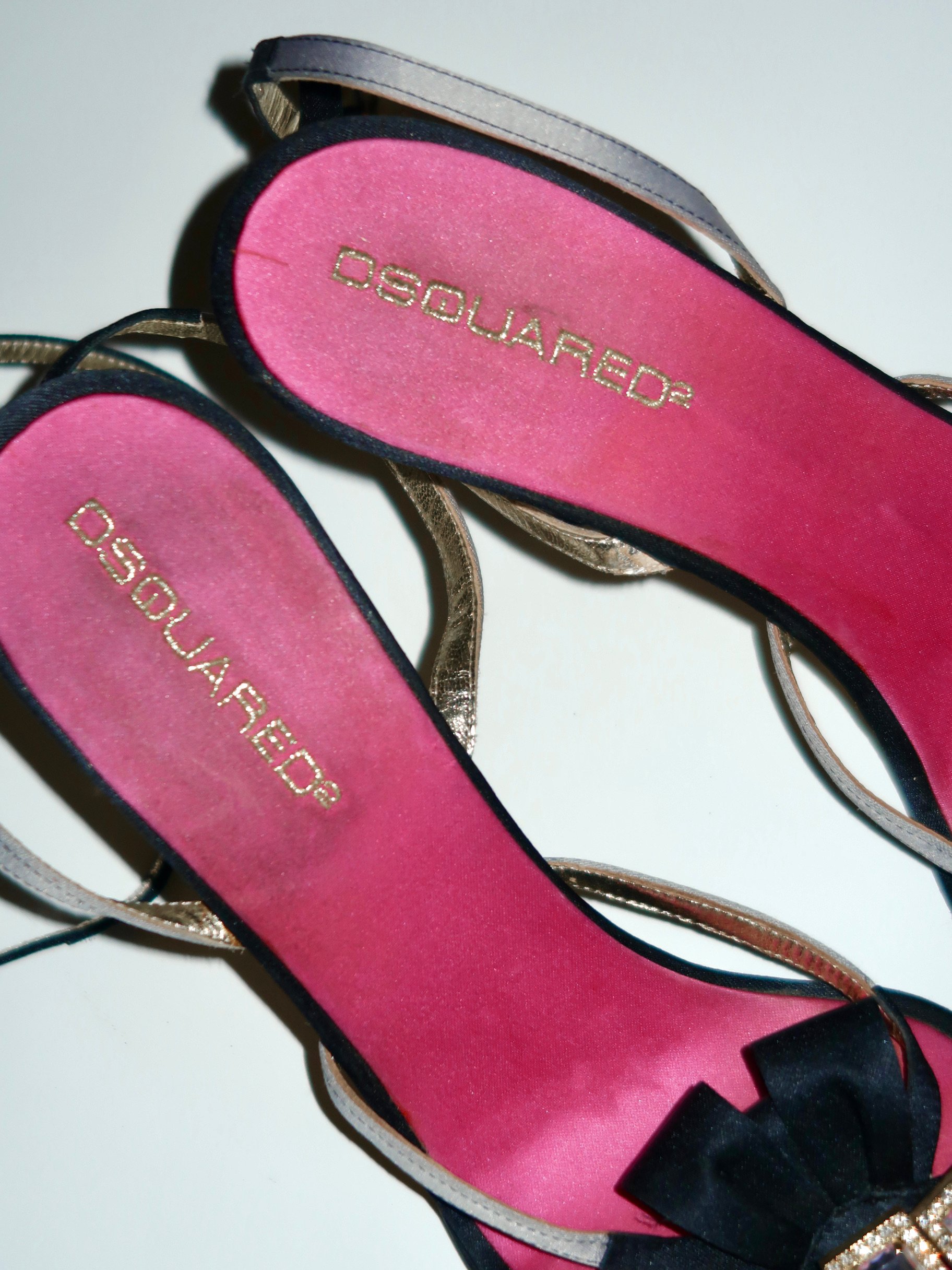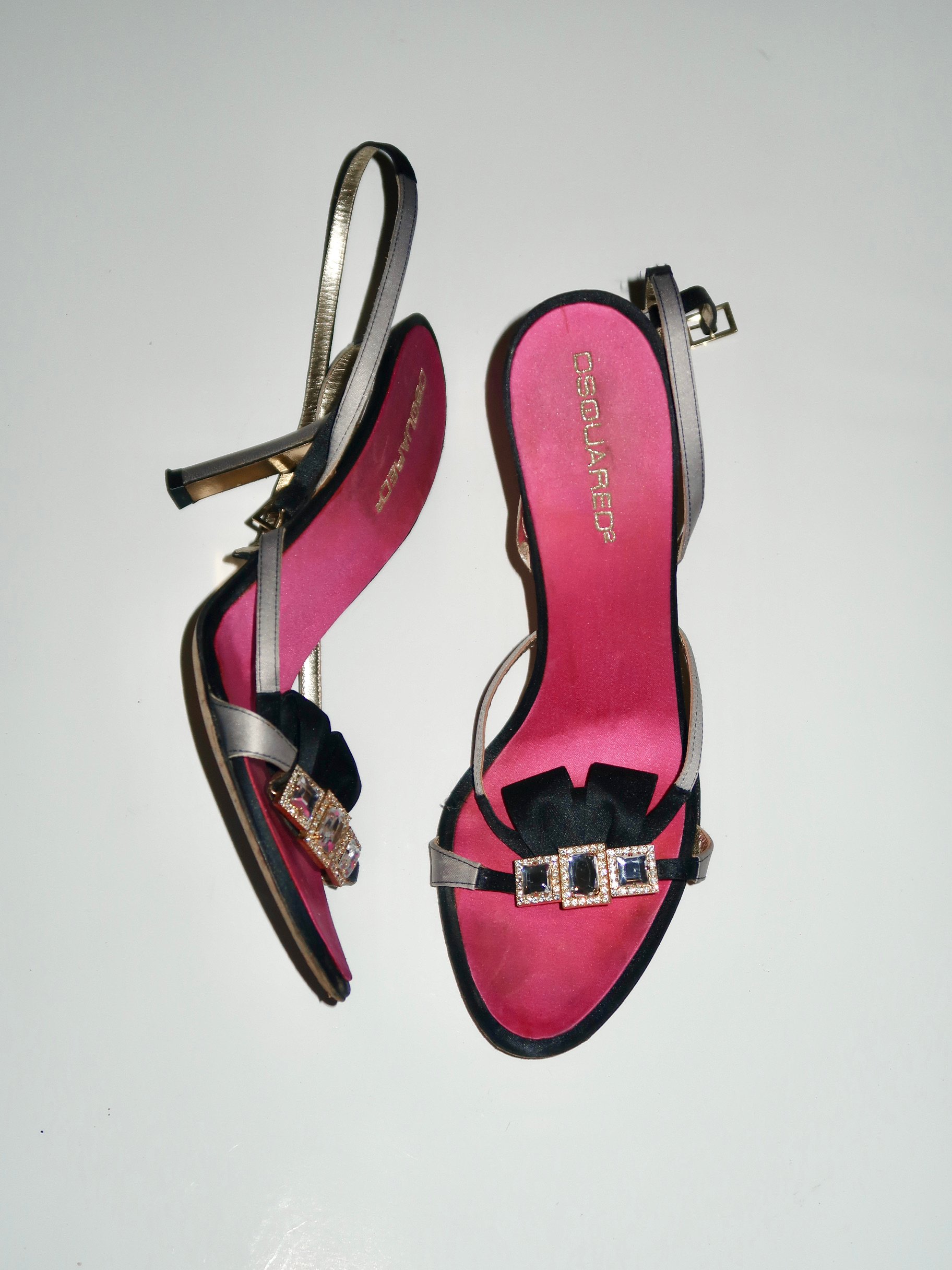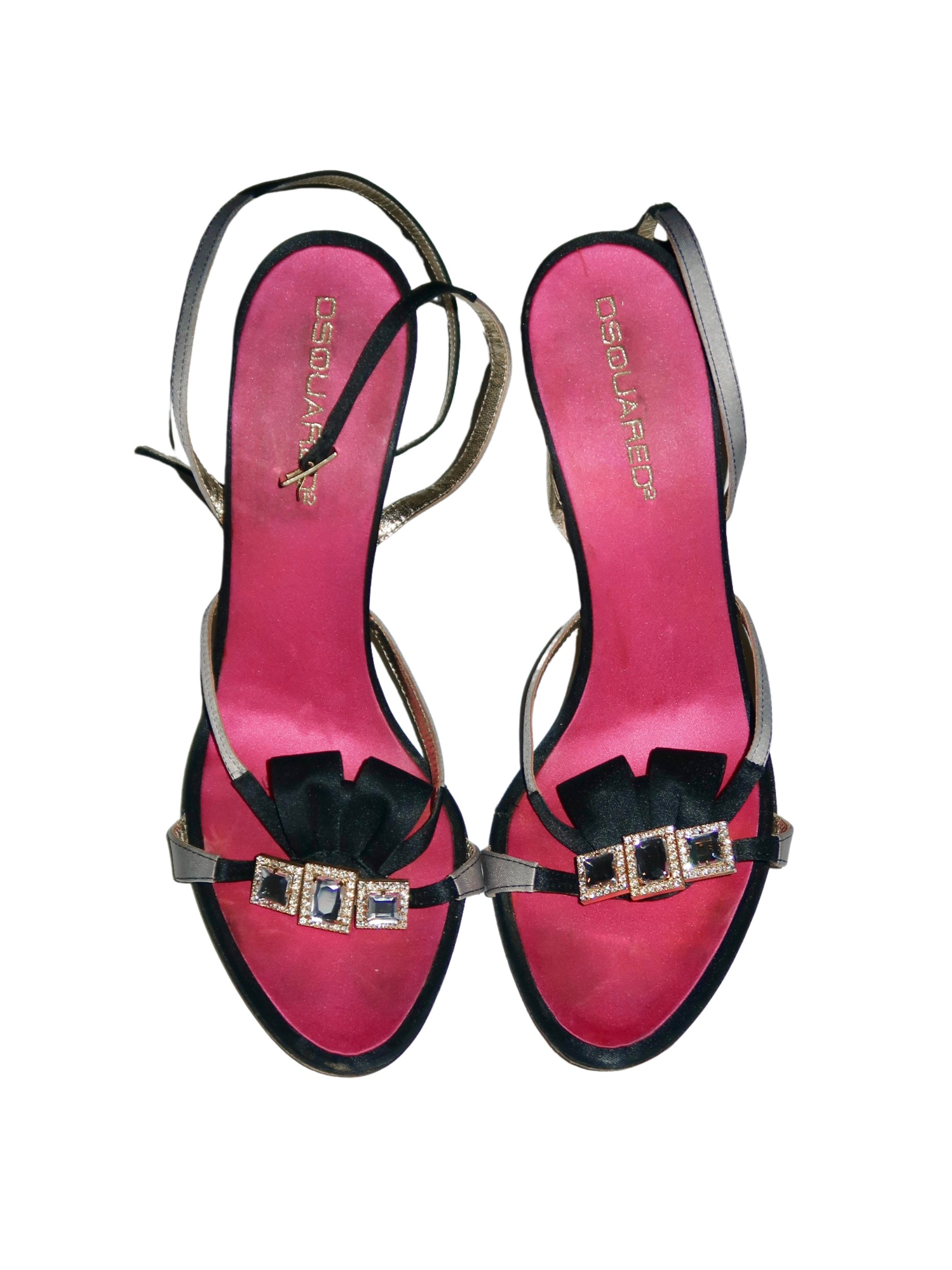 DSquared2 Hot Pink Satin Rhinestone Bow Sandal Heels - EU 39.5