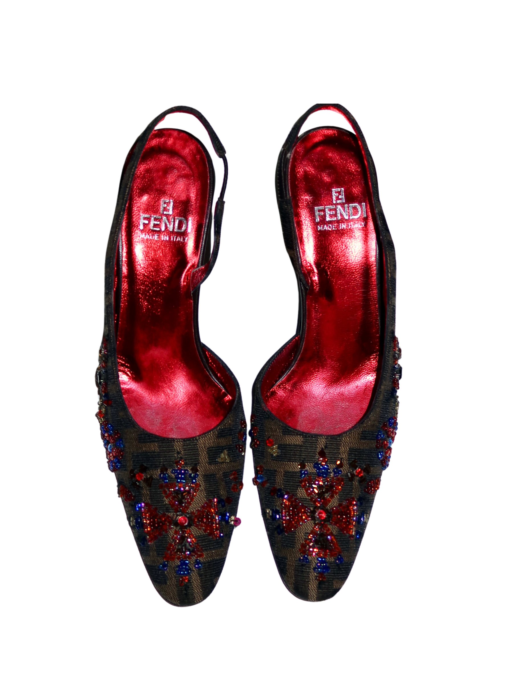 *RARE* Fendi Zucca Print Embroidered Slingbacks - EU5