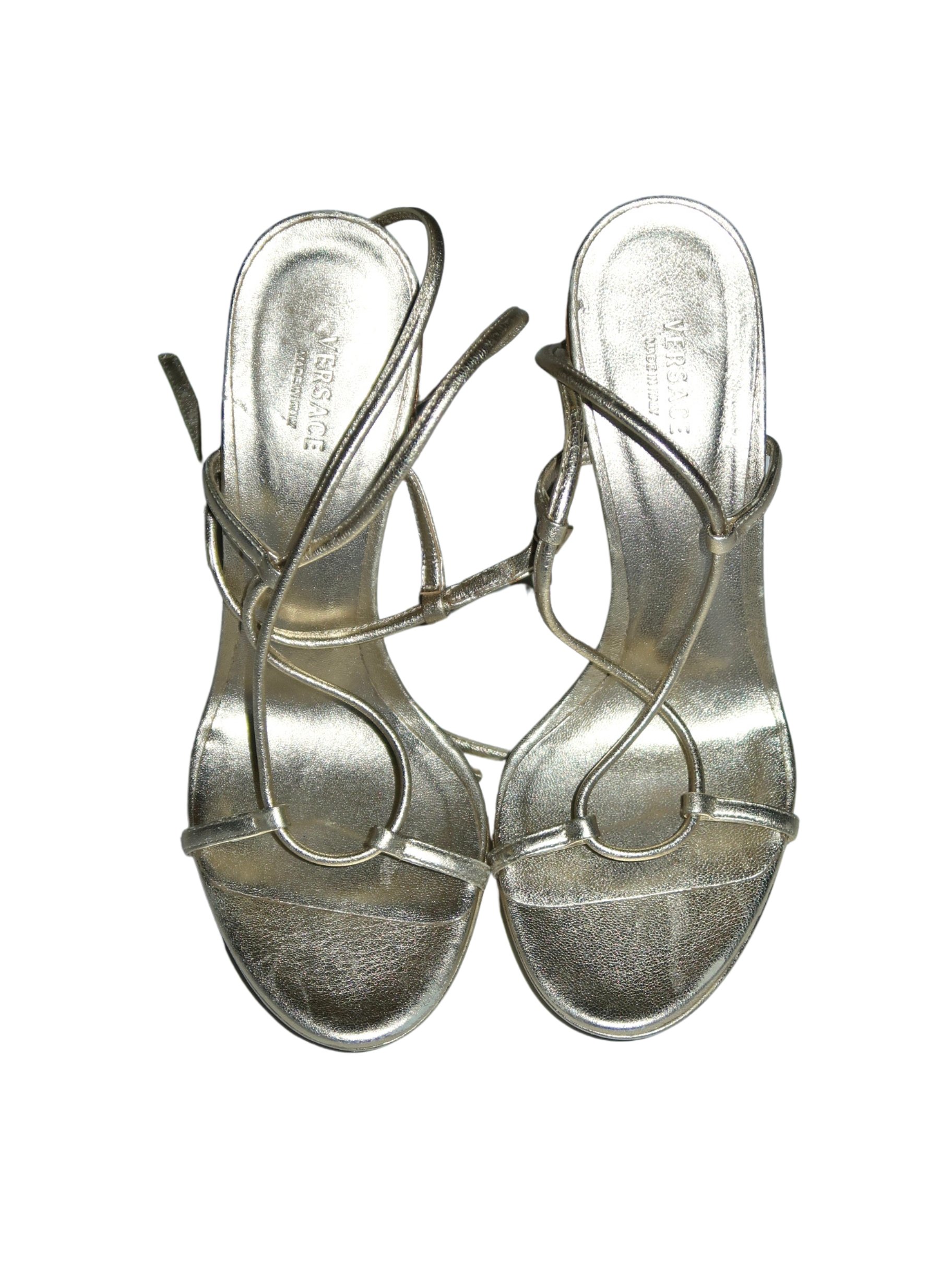 Versace Gold Platform Medusa Fringe Strappy Heels - EU 35.5
