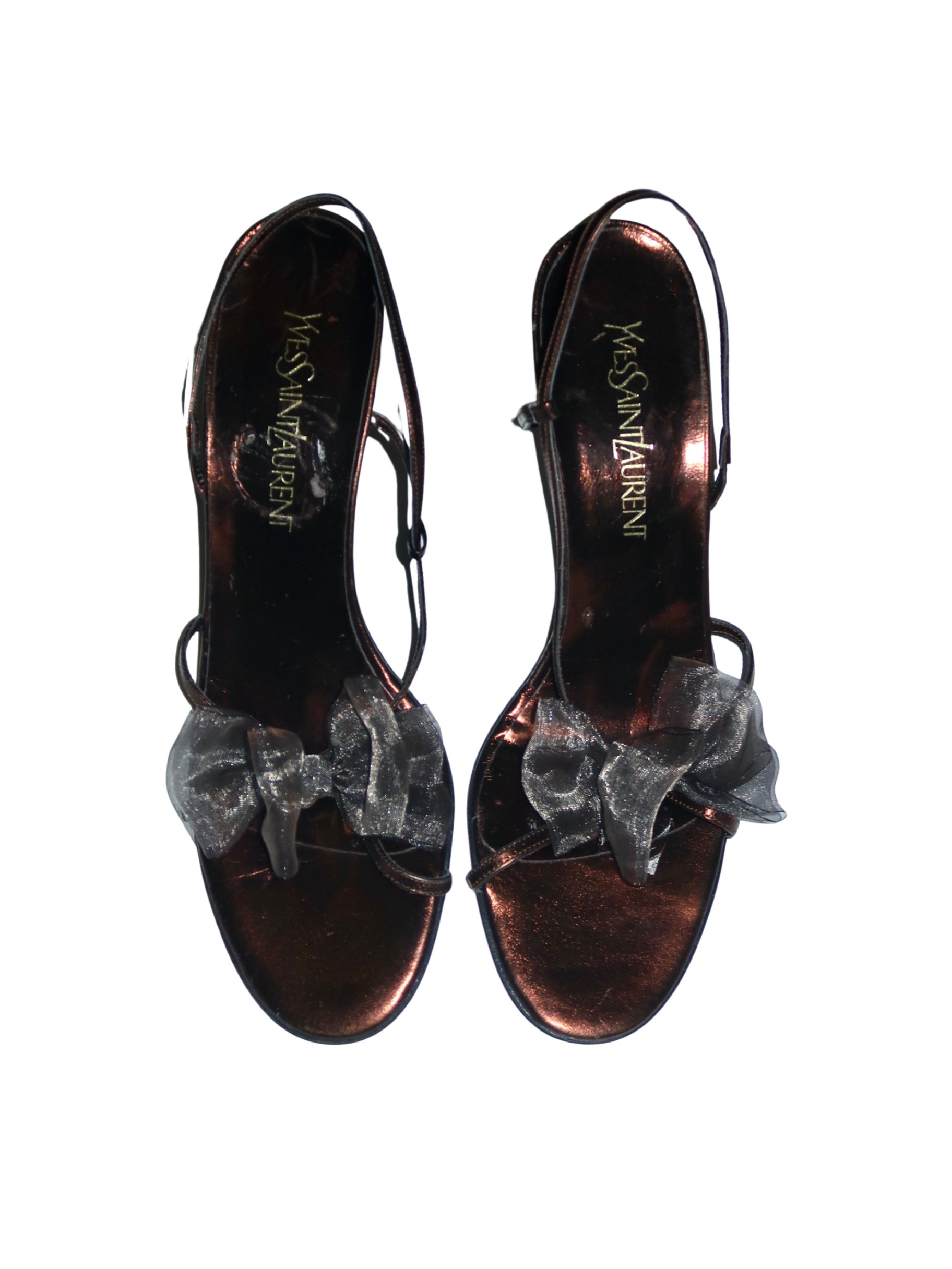 Yves Saint Laurent Bronze Bow Slingback Heels - US 10